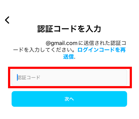 メールアドレスの場合は、設定したメールアドレスに認証コードが届きます。